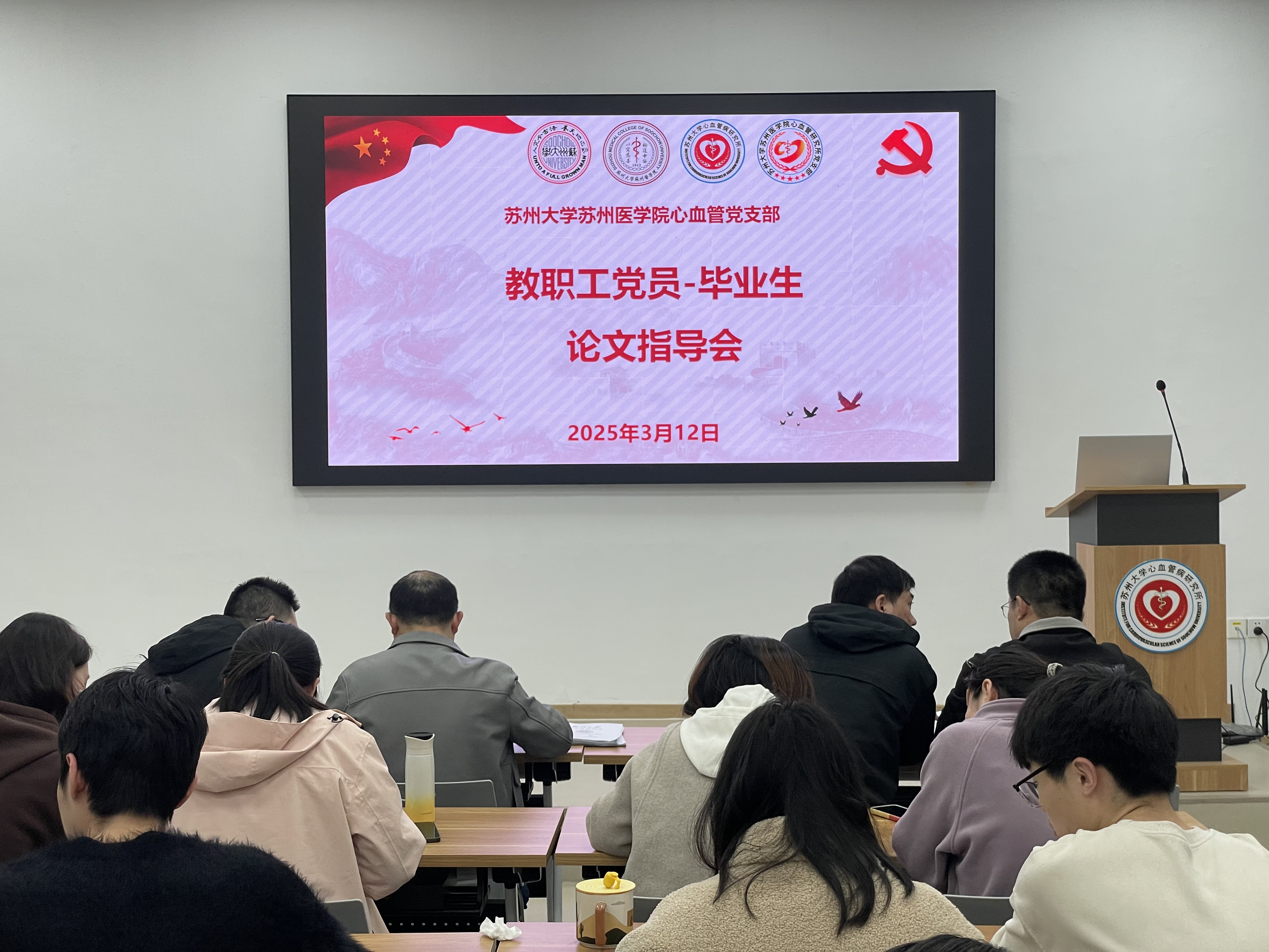 为将习近平新时代中国特色社会主义思想融入学术指导各个环节,3月12日下午,苏州大学心血管研究所党支部在机物楼一楼会议室,召开一对一论文指导会。会议以“党徽映‘心’・琢玉成篇”为主题,党支部书记胡士军和副书记赵越主持。