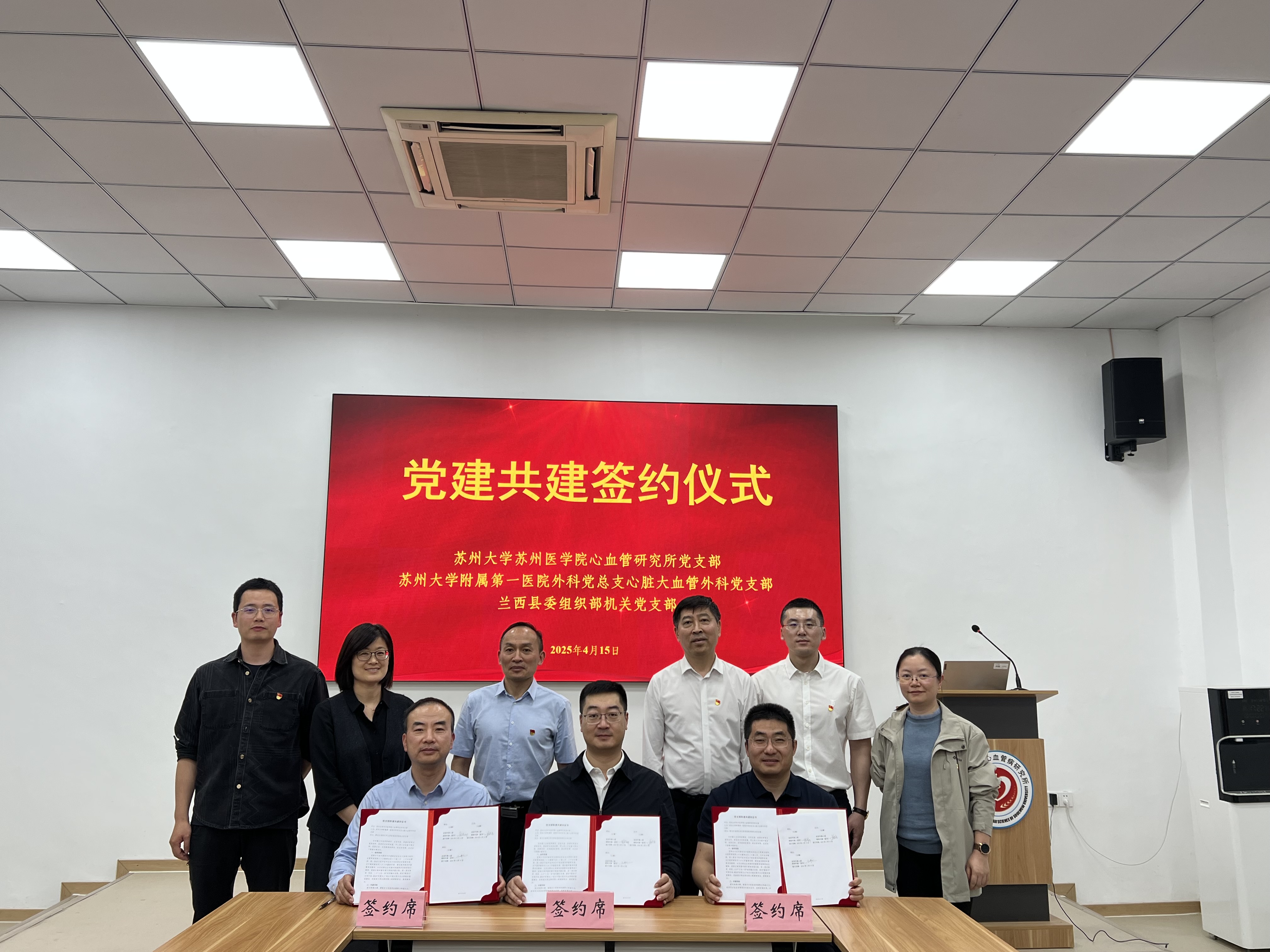 在与会人员见证下,兰西县委组织部机关党支部与苏州大学心血管研究所党支部、附属第一医院心脏大血管外科党支部正式签订党建共建协议,标志着校地合作进入实质性推进阶段。根据协议,双方将围绕“党建引领、资源共享、优势互补、协同发展”原则,重点开展三项合作:一是建立“双带头人”定期交流机制,每年组织专题党课、学术讲座和产业研讨会;二是共建医疗技术帮扶平台,接收兰西县医院骨干进修,选派党员医护赴兰西义诊,推动远程会诊、专家轮岗、等长效机制;三是设立“强国行”实践基地,为苏州大学师生提供乡村振兴、基层治理等实践场景,定向培养本土急需的医学和产业人才。