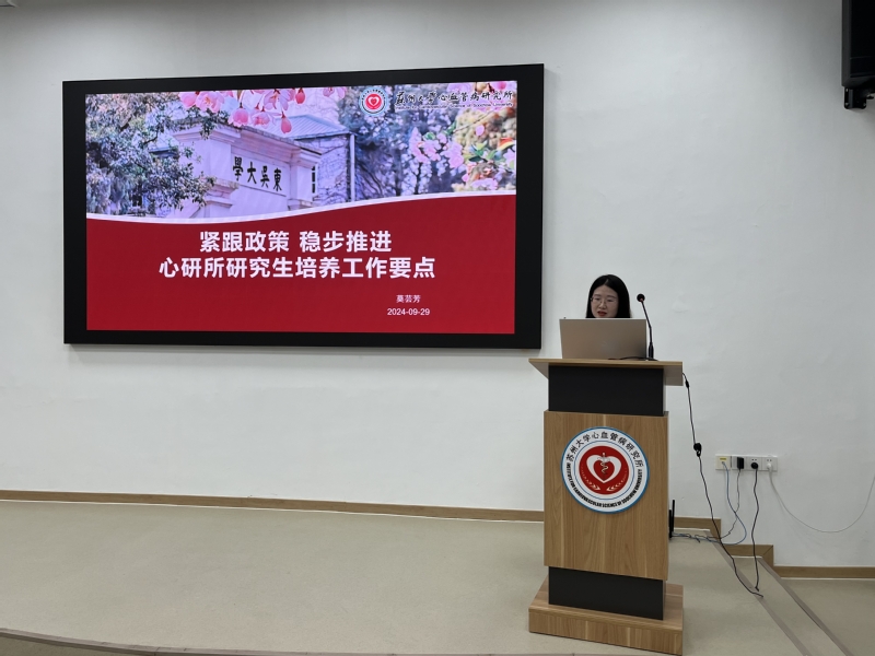 金秋送爽,云淡天高,9月29日,在新中国七十五载华诞到来之际,心血管病研究所2024年全体研究生大会在研究所学术报告厅举行。研究所全体师生、附属第一医院心脏大血管外科全体研究生导师出席了会议。会议由研究所副所长卢玮主持。