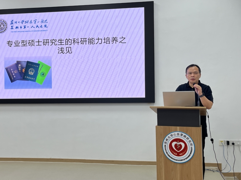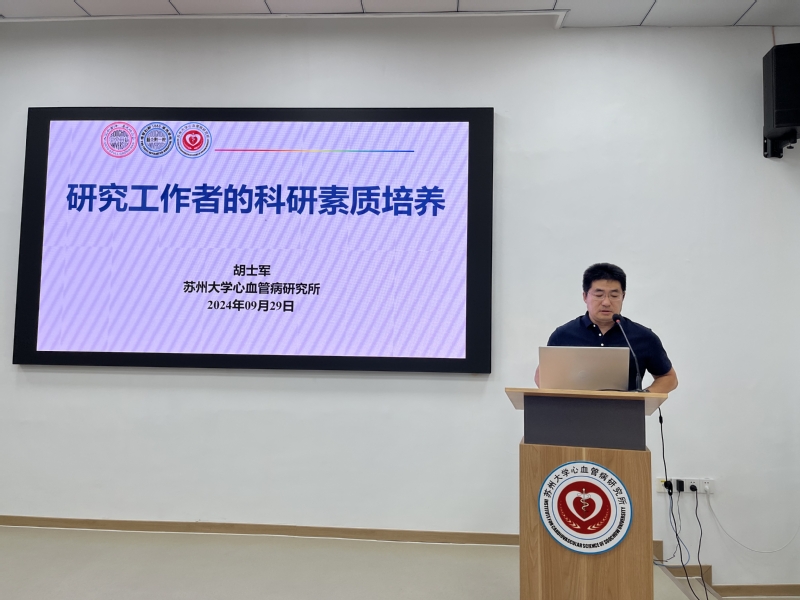 副所长胡士军给大家做了“科研素质培养”的讲座,从研究生应该具备的素养、怎么成为一名优秀的研究生、以及怎么对自己学术进行规划等方面给在场研究生指明了方向,激励大家要自觉遵守学术规范,脚踏实地对待科学研究,做新时代的科研人。此外,作为心血管研究所支部委员会党支部书记,胡所长简要介绍了党支部近期重点工作和入党基本流程,引导有志青年加入中国共产党。