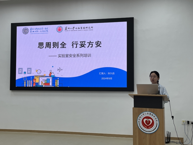 孙久远老师做了题为“思周则全,行妥方安”的安全教育报告。她从实验室安全标识入手,带领大家认识危险源,并详细示范平日如何做好个人防护以及遇到突发情况的应急处理,她要求同学们要守护好实验室的安全底线,保护好自己和他人的人身安全。