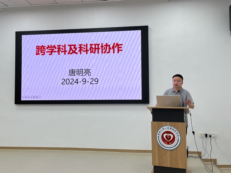 教授代表唐明亮结合当前心血管病的难点痛点问题,从跨学科角度,强调了现阶段学术环境下多学科交叉融合的重要性。他认为要进一步推进基础学科与临床医学的合作,强化临床疾病病因及机制研究,为临床诊疗寻找新策略,进而推动临床诊疗技术更新。唐教授还鼓励课题组之间、学生之间科开展多种形式的科研协作,开拓思维,精诚团结,为医学研究创造更多的成果与价值。