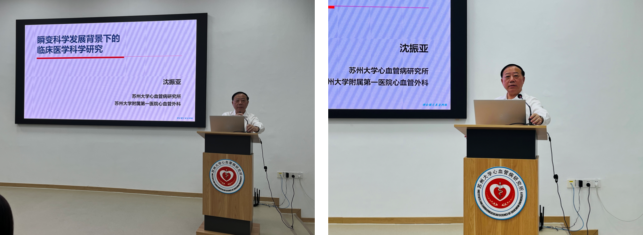 会议最后,所长沈振亚结合自己从医、从教、从研四十余年的经验,做了“瞬变科学发展背景下的临床医学科学研究”主题报告。沈所长从大工业革命发展,谈到现代医学的起源,再到如今的基因组时代,他强调,医学科研工作者要跟上科技的迅速发展,要坚持临床需求驱动,以实现基础研究与临床转化的紧密结合,最终解决临床实际问题。他指出,大数据时代,应深度结合转化医学与精准医学,以疾病类型为中心,推动学科交叉融合,当前亟待建立创新的临床研究理念。他呼吁,同学们在不断提高自身素养的同时,要秉持聚焦前沿、需求牵引和共性导向的原则,为医学的发展贡献力量。