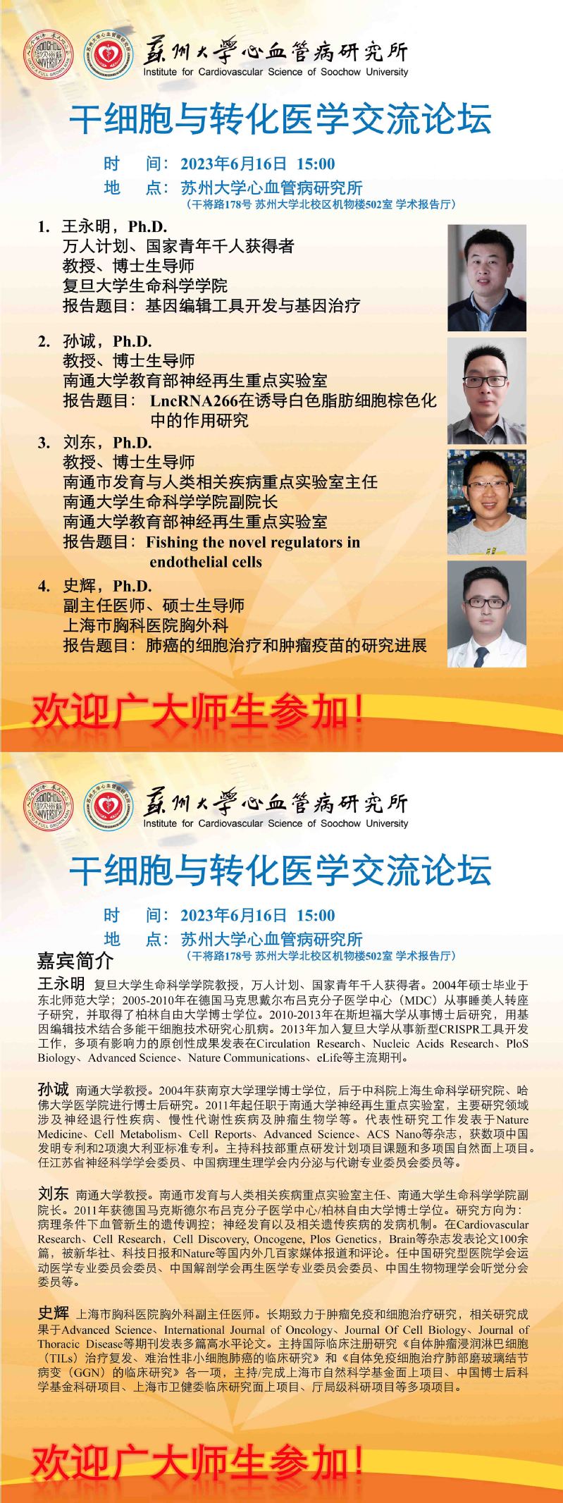 心血管病研究所学术讲座——王永明、孙诚、刘东、史辉
