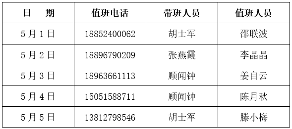 2021年劳动节值班表